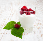 Desery mleczne - jogurt z świeżych dojrzałych malin czerwony