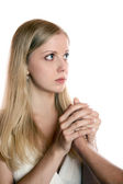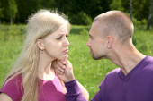 dziewczyna wbija gwoździe w twarz młodego człowieka