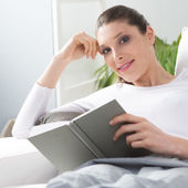 sypialnia - młoda kobieta czytać książki w łóżku