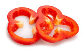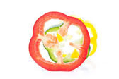 pomarańczowy, zielony i czerwony pieprz plastry na białym tle