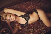 kobieta w szlafrok pozowanie w pobliżu krzesło vintage