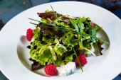 Świeża sałatka z truskawek, koziego sera i krewetek