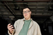 Zdjęcie "Młody człowiek z zespołem Downa wygodnie spędza czas ze smartfonem na kanapie." może być wykorzystywane do celów osobistych i komercyjnych zgodnie z warunkami zakupionej licencji Royalty-free. Obraz jest dostępny do pobrania w jakości wysokiej rozdzielczości do 5760x3840.