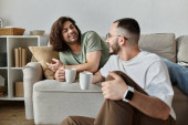 Szczęśliwa para dzieli czuły uścisk w ich jasnej kuchni.