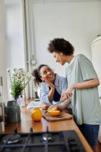Zdjęcie "Kochająca się para przygotowuje świeży posiłek, dzieląc się uśmiechem i śmiechem w przytulnej kuchni." może być wykorzystywane do celów osobistych i komercyjnych zgodnie z warunkami zakupionej licencji Royalty-free. Obraz jest dostępny do pobrania w jakości wysokiej rozdzielczości do 5760x3840.