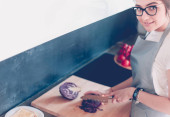 Zdjęcie "Uśmiechnięta kobieta trzyma kubek stojąc w swojej jasnej kuchni." może być wykorzystywane do celów osobistych i komercyjnych zgodnie z warunkami zakupionej licencji Royalty-free. Obraz jest dostępny do pobrania w jakości wysokiej rozdzielczości do 5760x3840.