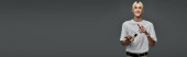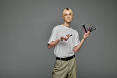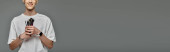 Zdjęcie "Mężczyzna wyraża głębokie emocje trzymając smartfona." może być wykorzystywane do celów osobistych i komercyjnych zgodnie z warunkami zakupionej licencji Royalty-free. Obraz jest dostępny do pobrania w jakości wysokiej rozdzielczości do 5760x3840.