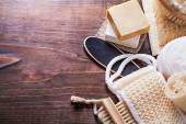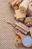 masującą, luffa, mydło, szczotka do włosów, lustro