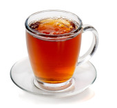 herbata jest wlewany do filiżanki herbaty na białym tle na białym tle