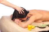 Młoda kobieta coraz masażu w spa