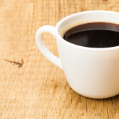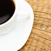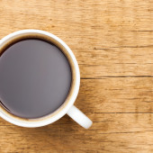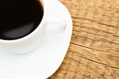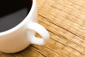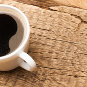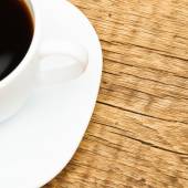 Filiżankę czarnej kawy na starym drewnianym stole - strzał z góry