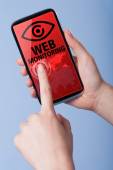 Mężczyzna prasy dotykowy ekran inteligentny telefon z symbolem digita