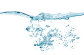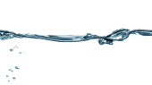 na białym tle wody, przelewanie z bąbelkami i woda spada - streszczenie