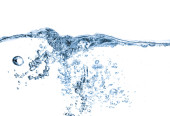 na białym tle wody, przelewanie z bąbelkami i woda spada - streszczenie