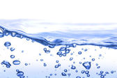 na białym tle wody, przelewanie z bąbelkami i woda spada - streszczenie