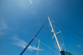 Zdjęcie "jacht katamaran. Błękitny ocean spokojny i bezchmurne niebo niebieskie są w tle" może być wykorzystywane do celów osobistych i komercyjnych zgodnie z warunkami zakupionej licencji Royalty-free. Obraz jest dostępny do pobrania w jakości wysokiej rozdzielczości do 5760x3840.