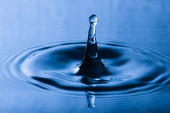 czysty niebieski kropli zalewaniem w czystej wodzie. niebieski streszczenie