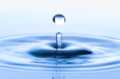 czysty niebieski kropli zalewaniem w czystej wodzie. niebieski streszczenie