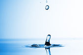 czysty niebieski kropli zalewaniem w czystej wodzie. niebieski streszczenie