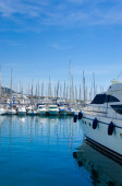 Funchal, Madera - 22 kwietnia, 2015:Yachts zacumowane w Funchal morskim, wyspa Madera, Portugalia.