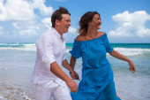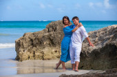Odcinek plaży chodzenie na romantyczną podróż.