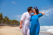 Odcinek plaży chodzenie na romantyczną podróż.