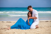 Odcinek plaży chodzenie na romantyczną podróż.