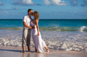 Odcinek plaży chodzenie na romantyczną podróż.