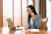 Zdjęcie "Uśmiechnięta piękna kobieta korzystająca z telefonu z wyszukiwaniem listy klientów, patrząc na aparat fotograficzny fotografowanie portret biznes profil z inteligentnym współpracownikiem w nowoczesnym biurze w godzinach porannych. Postulat." może być wykorzystywane do celów osobistych i komercyjnych zgodnie z warunkami zakupionej licencji Royalty-free. Obraz jest dostępny do pobrania w jakości wysokiej rozdzielczości do 5760x3840.