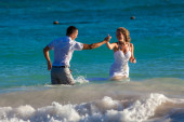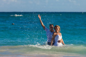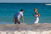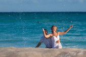 Odcinek plaży chodzenie na romantyczną podróż.