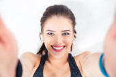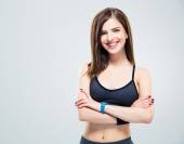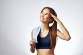 Zdjęcie "Portret roześmiany fitness kobieta z ręcznikiem" może być wykorzystywane do celów osobistych i komercyjnych zgodnie z warunkami zakupionej licencji Royalty-free. Obraz jest dostępny do pobrania w jakości wysokiej rozdzielczości do 5760x3840.