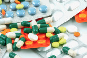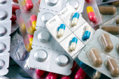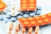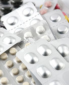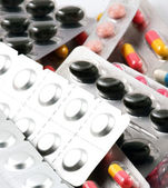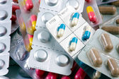 Tabletki o wielu kształtach i kolorach zgrupowane razem