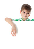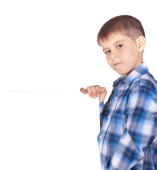 chłopiec z białe transparent