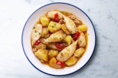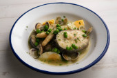 Gulasz z małży z ziemniakami i fasolą. Tradycyjny hiszpański przepis.