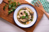 Gulasz z małży z ziemniakami i fasolą. Tradycyjny hiszpański przepis.