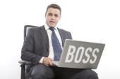 Człowiek w kurtkę siedzi na krześle