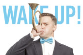 Zabawny człowiek w niebieskim muszka