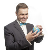 Zdjęcie "Zabawny człowiek w kokarda niebieski" może być wykorzystywane do celów osobistych i komercyjnych zgodnie z warunkami zakupionej licencji Royalty-free. Obraz jest dostępny do pobrania w jakości wysokiej rozdzielczości do 5760x3840.