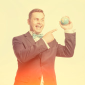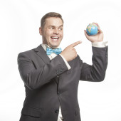 Zabawny człowiek w kokarda niebieski