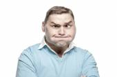 Zabawny człowiek w niebieskim muszka