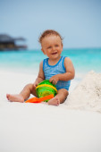 małe dziecko zabawy na tropikalnej plaży.