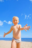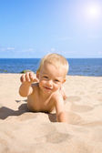 małe dziecko zabawy na tropikalnej plaży.