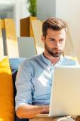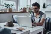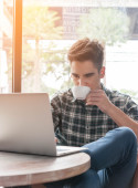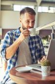 Zdjęcie "człowiek pije kawę i pracy na laptopie" może być wykorzystywane do celów osobistych i komercyjnych zgodnie z warunkami zakupionej licencji Royalty-free. Obraz jest dostępny do pobrania w jakości wysokiej rozdzielczości do 5760x3840.