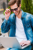 Zdjęcie "Człowiek pracujący na laptopie na zewnątrz" może być wykorzystywane do celów osobistych i komercyjnych zgodnie z warunkami zakupionej licencji Royalty-free. Obraz jest dostępny do pobrania w jakości wysokiej rozdzielczości do 5760x3840.