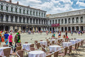 Wenecja, Włochy - na 30 kwietnia 2015 roku. Ludzie jedzą i odpocząć w kawiarni na placu San-Marko