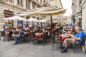 Zdjęcie "Wenecja, Włochy - na 30 kwietnia 2015 roku. Ludzie jedzą i odpocząć w kawiarni na placu San-Marko" może być wykorzystywane do celów osobistych i komercyjnych zgodnie z warunkami zakupionej licencji Royalty-free. Obraz jest dostępny do pobrania w jakości wysokiej rozdzielczości do 5760x3840.
