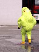 człowiek z żółtym ochronnej przeciwko zagrożenie biologiczne