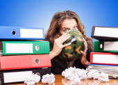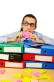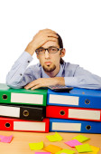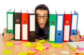 biznesmen z wielu folderów w biały