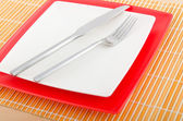 Przybory spożywcze podawane w talerzu