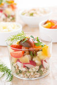 dietetyczne jedzenie - świeże sałatki z warzywami i serem